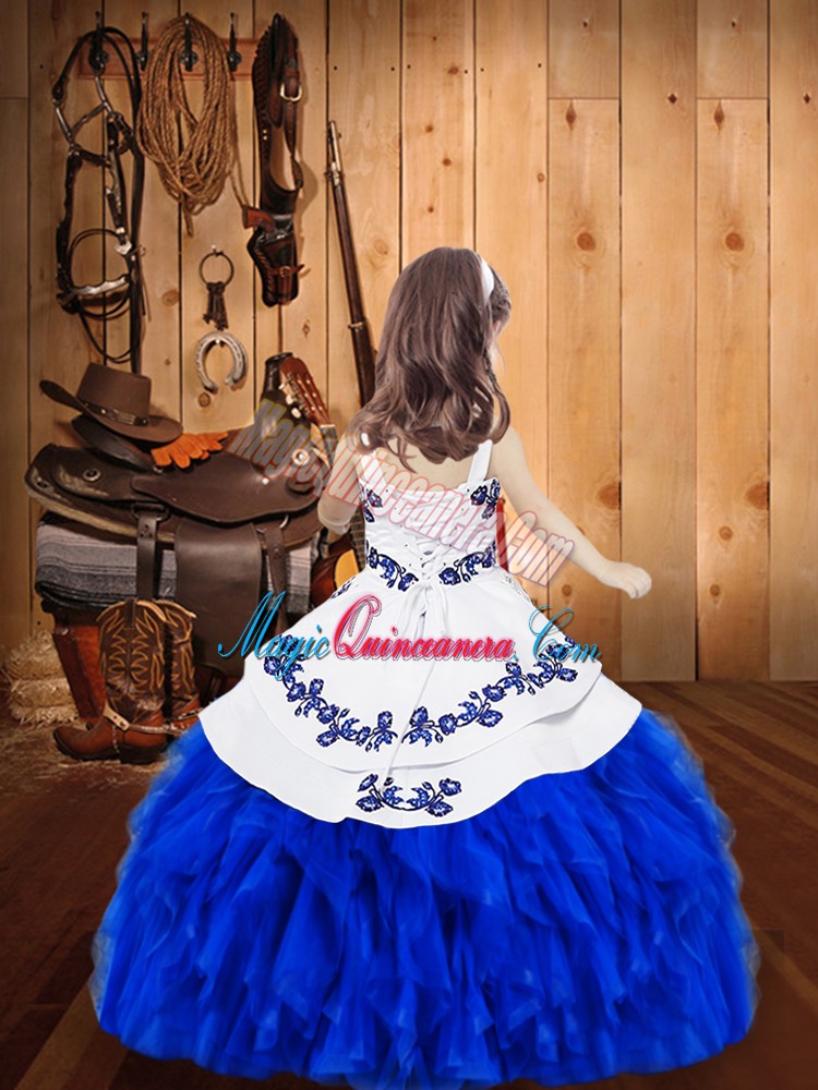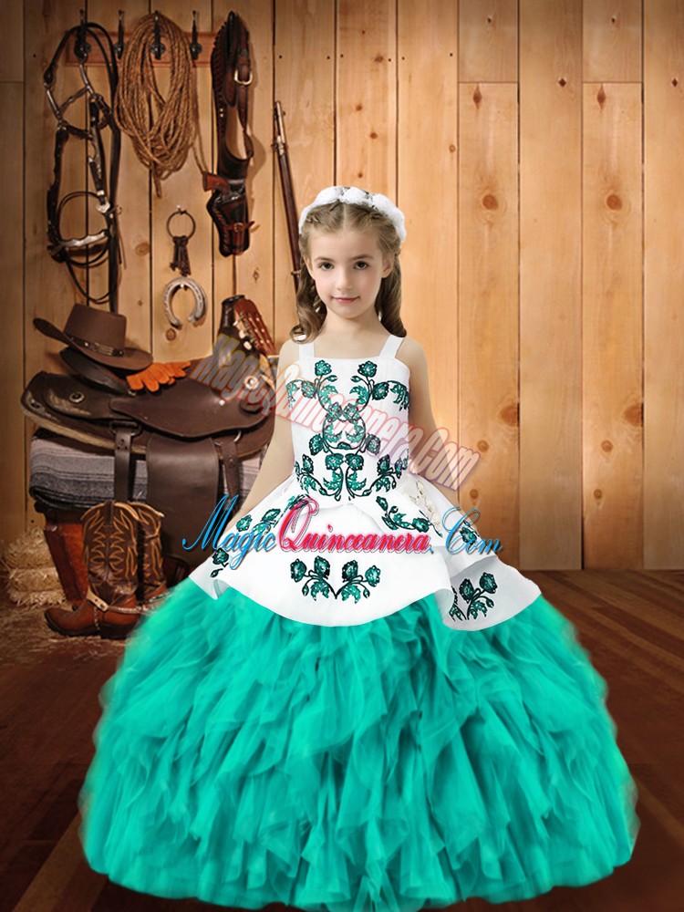 Aqua Blue Sleeveless Embroidery and Ruffles Floor Length Little Girl Pageant Gowns