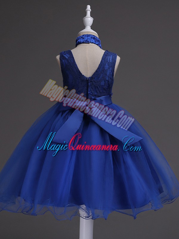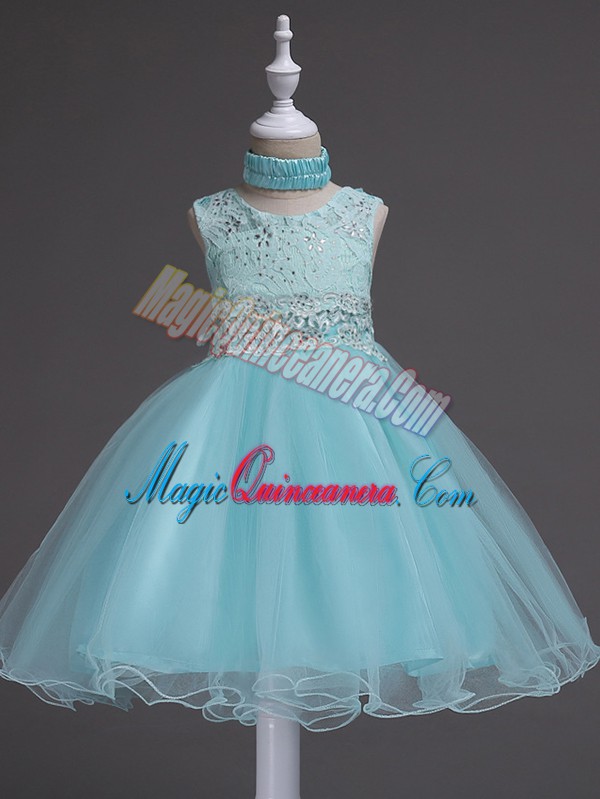 Aqua Blue Sleeveless Organza Zipper Girls Pageant Dresses for Wedding Party