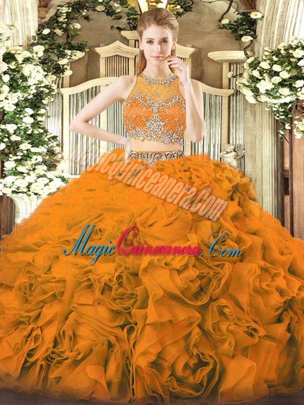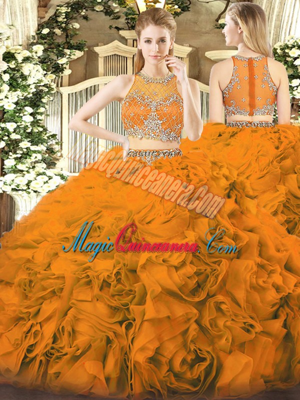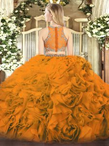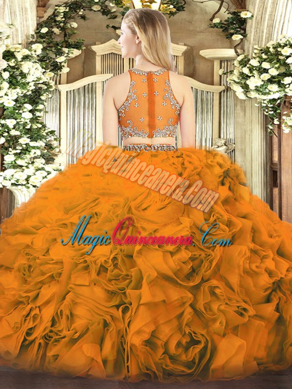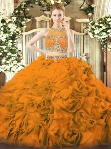 Artistic Floor Length Orange Red 15th Birthday Dress Scoop Sleeveless Zipper