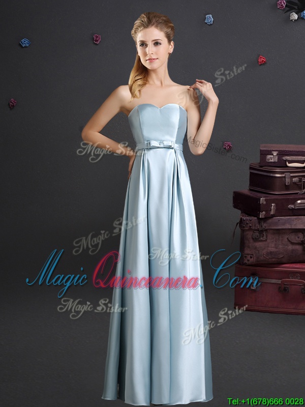 Artistic Floor Length Zipper Dama Dress for Quinceanera Light Blue and In for Prom and Party and Wedding Party with Bowknot - Magic Quinceanera