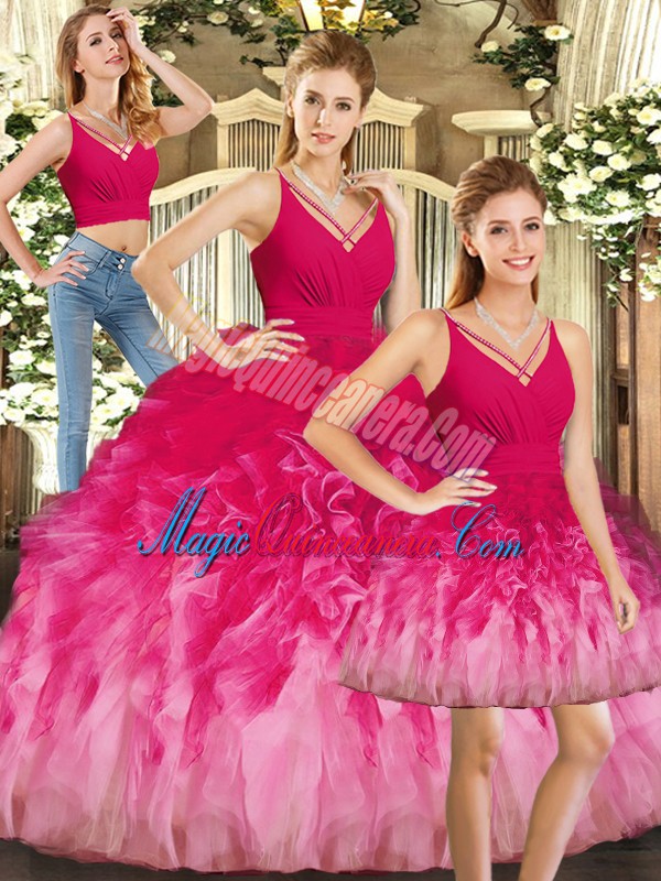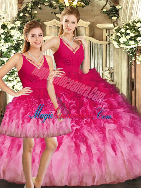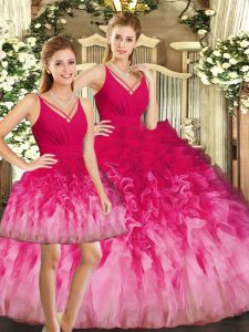 Artistic Multi-color V-neck Neckline Ruffles Sweet 16 Dress Sleeveless Backless