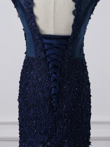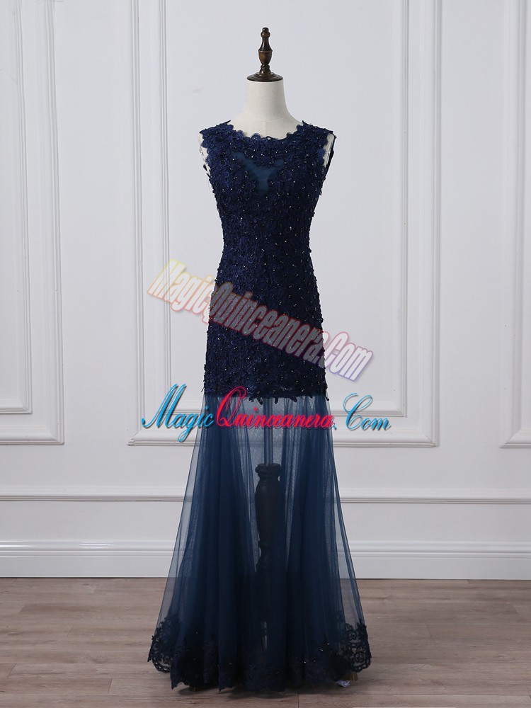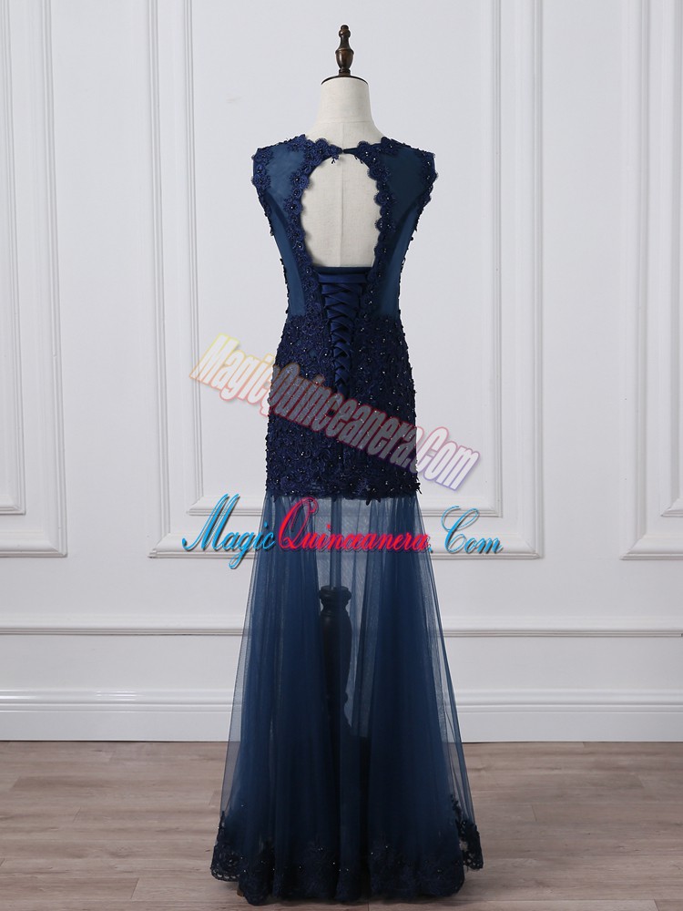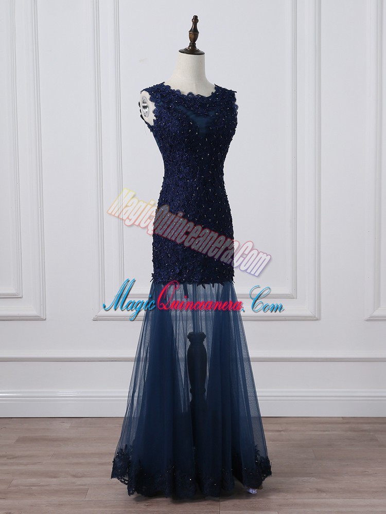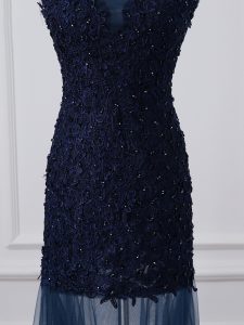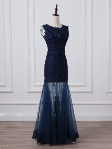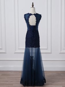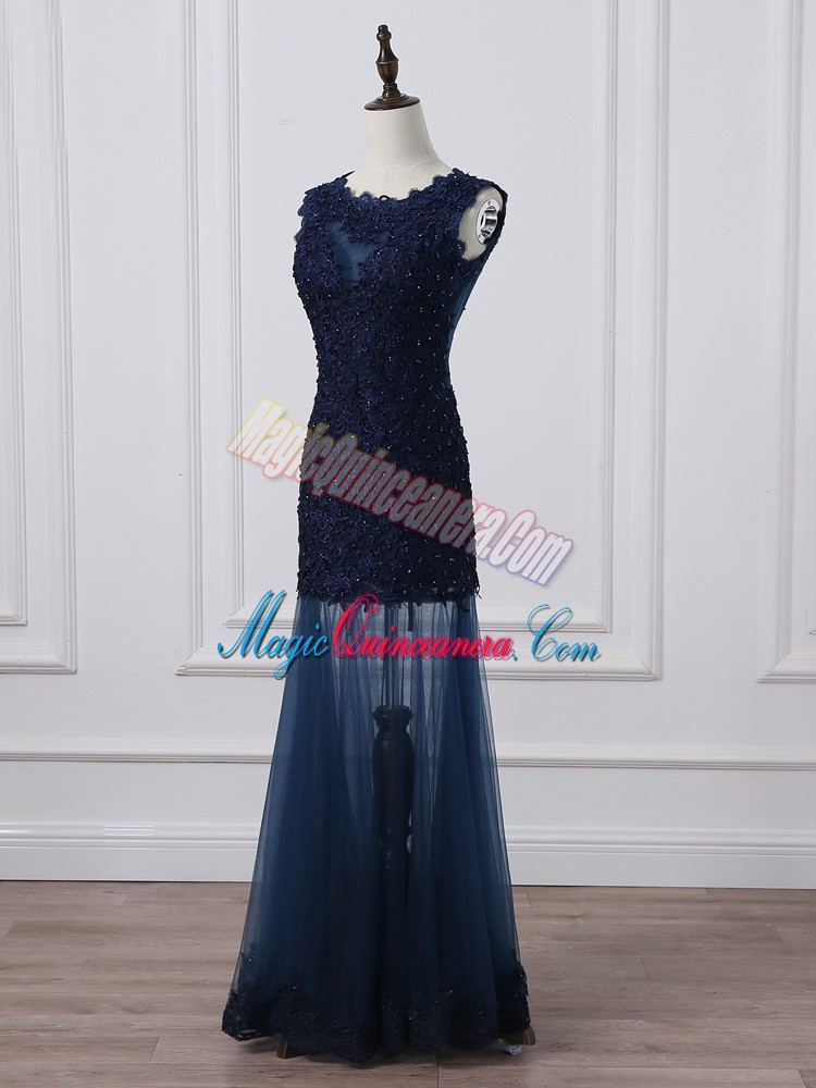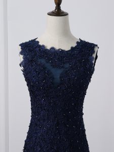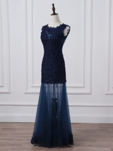 Artistic Navy Blue Lace Up Scoop Lace and Appliques Mother of Groom Dress Tulle Sleeveless