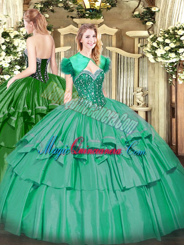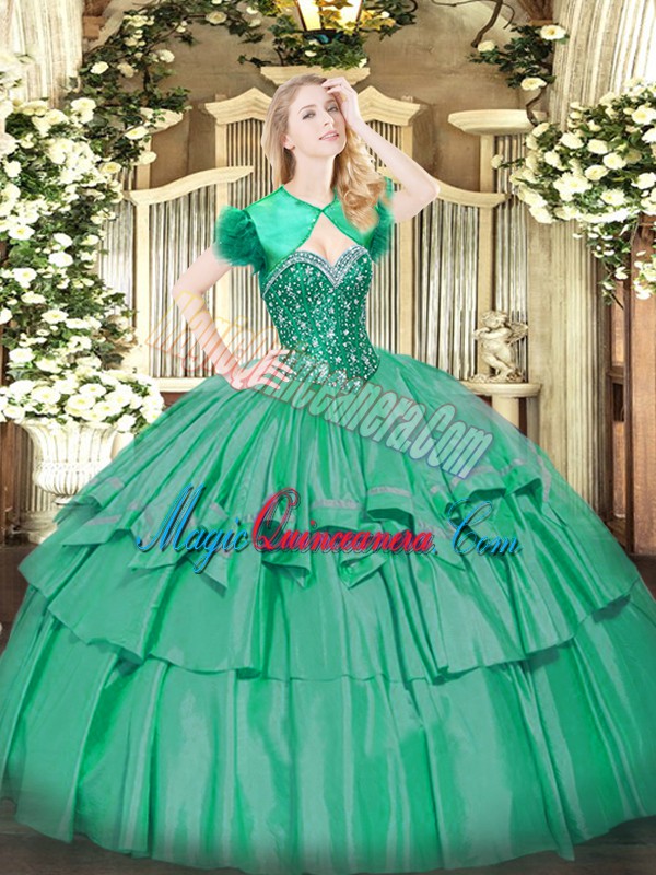 , Artistic Sleeveless Beading and Ruffled Layers Lace Up Quinceanera Gown
