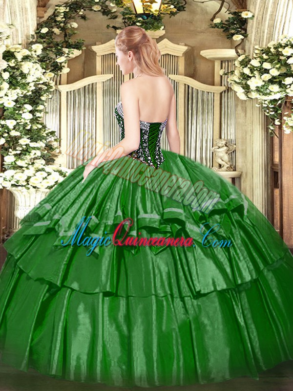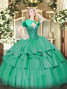 Artistic Sleeveless Beading and Ruffled Layers Lace Up Quinceanera Gown