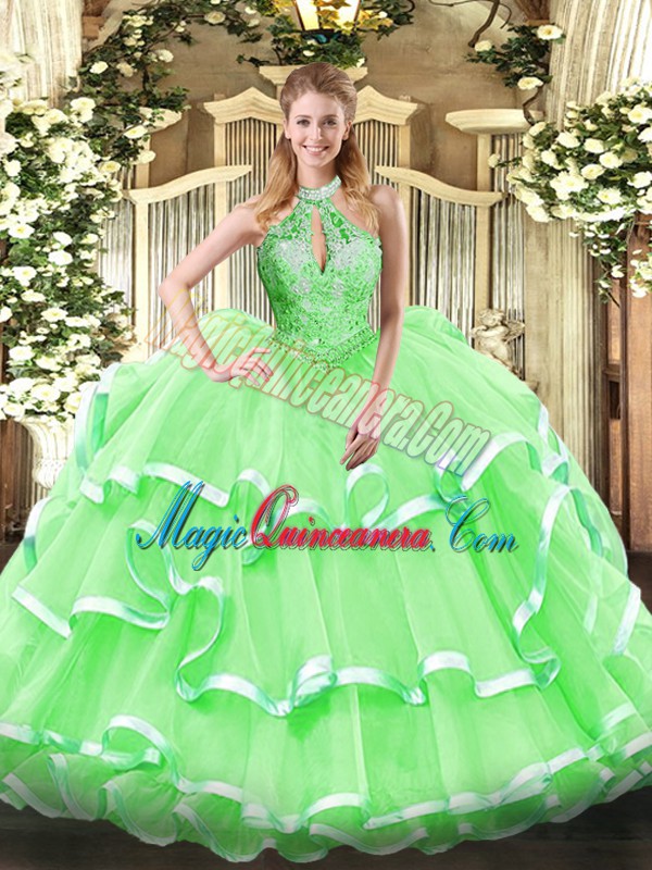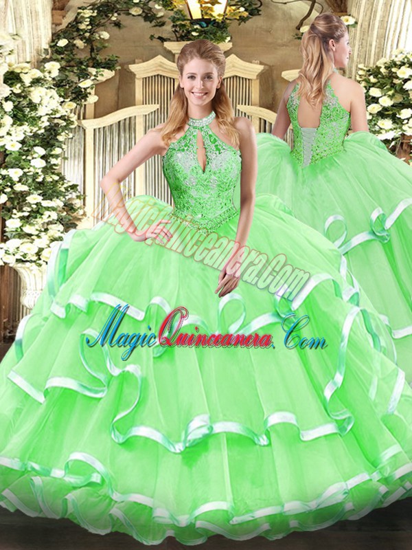 Artistic Sleeveless Lace Up Floor Length Beading and Ruffles Quinceanera Dress