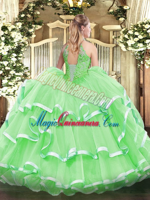 , Artistic Sleeveless Lace Up Floor Length Beading and Ruffles Quinceanera Dress