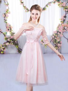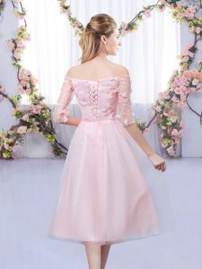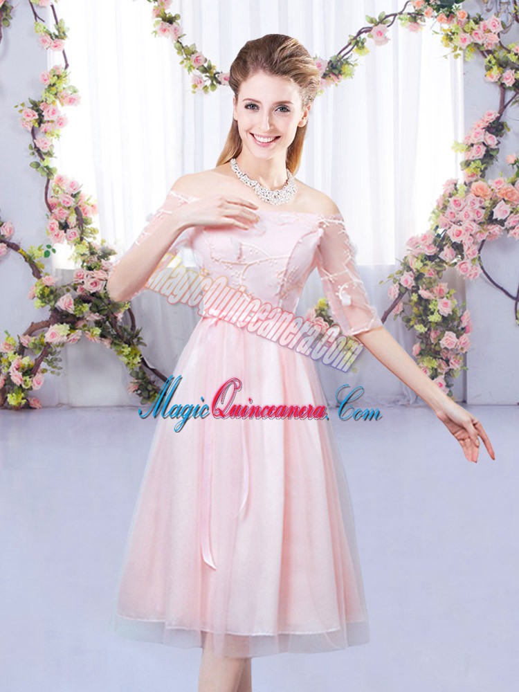 Artistic Tea Length Empire Half Sleeves Baby Pink Vestidos de Damas Lace Up