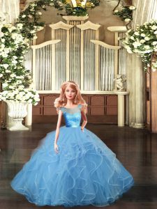 , Baby Blue Scoop Backless Lace and Ruffles Quince Ball Gowns Sleeveless