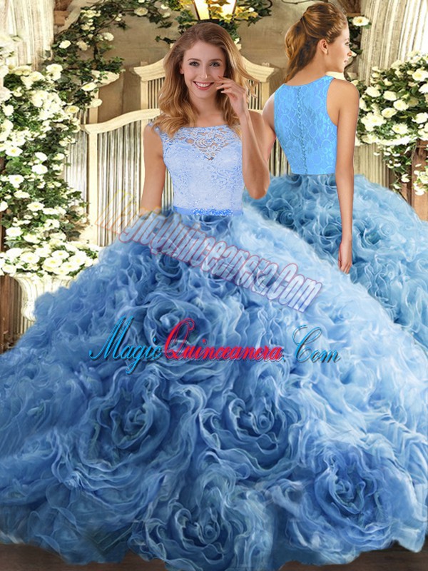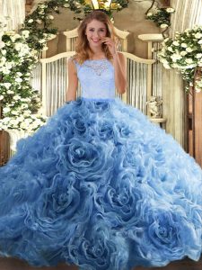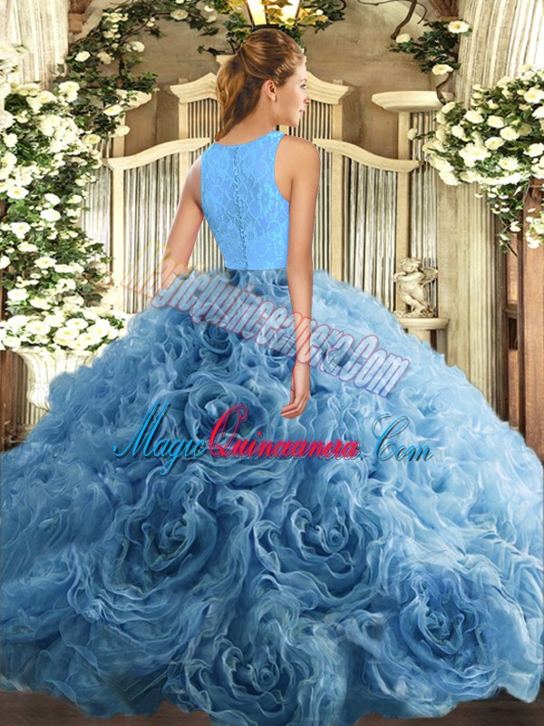 Baby Blue Scoop Zipper Beading and Ruffles 15th Birthday Dress Sleeveless