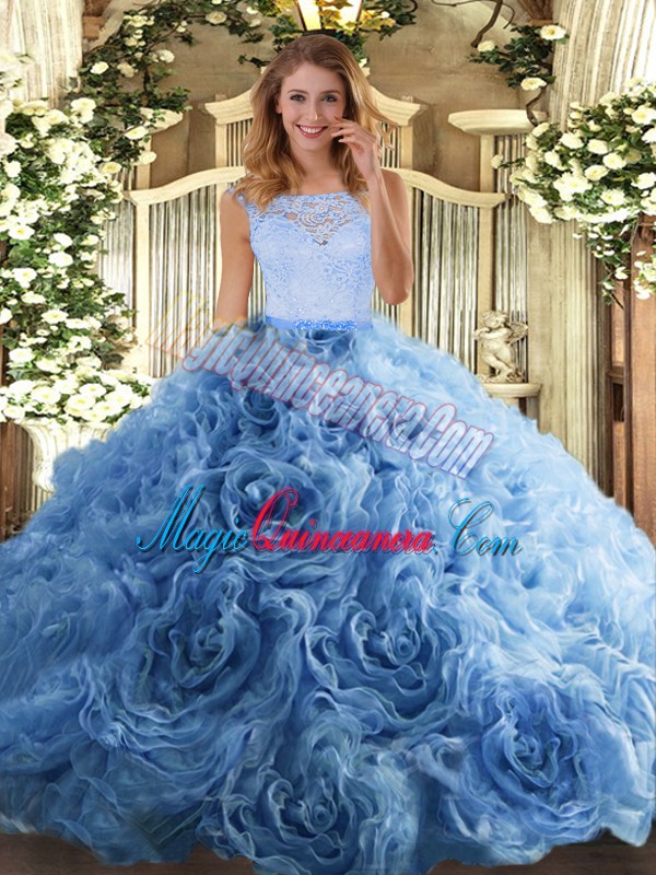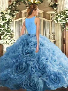 , Baby Blue Scoop Zipper Beading and Ruffles 15th Birthday Dress Sleeveless