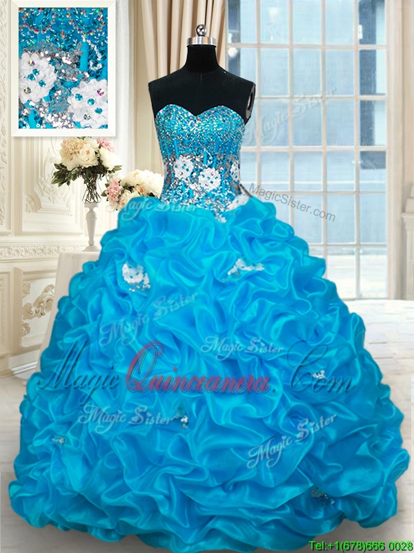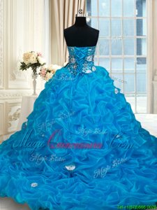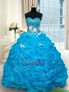 Baby Blue Sweetheart Neckline Beading and Pick Ups Sweet 16 Quinceanera Dress Sleeveless Lace Up
