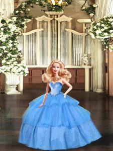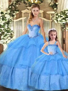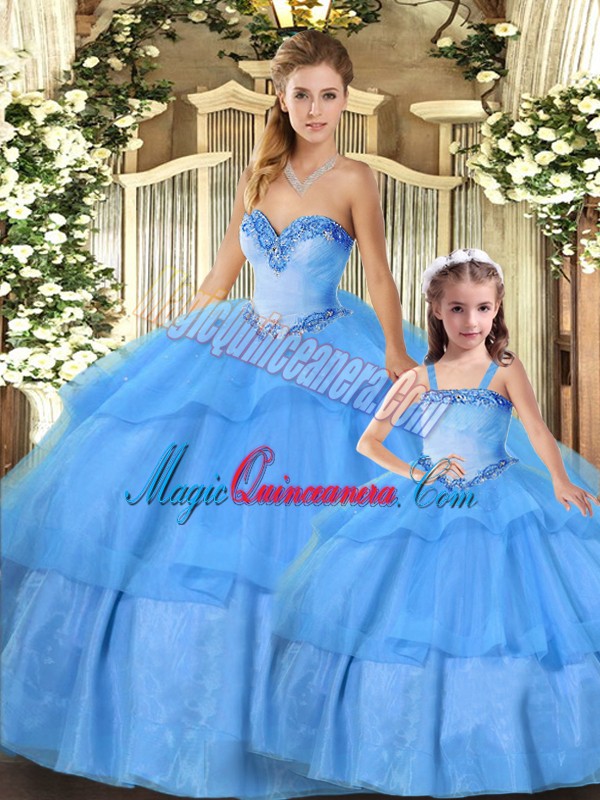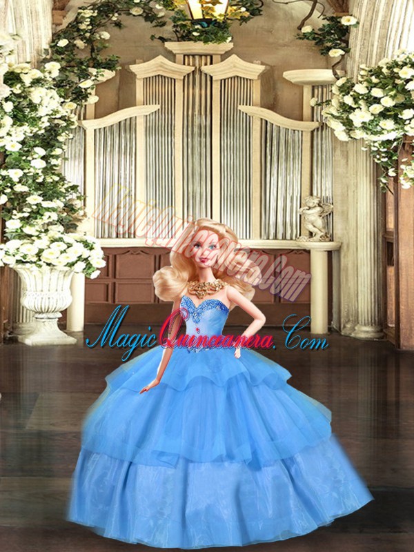 Baby Blue Sweetheart Neckline Beading and Ruffled Layers Quinceanera Gowns Sleeveless Lace Up