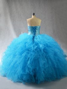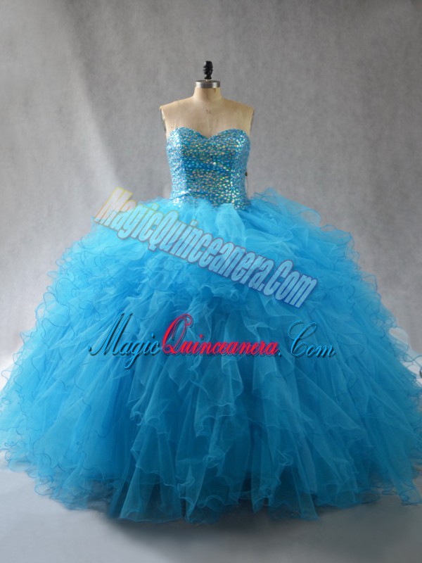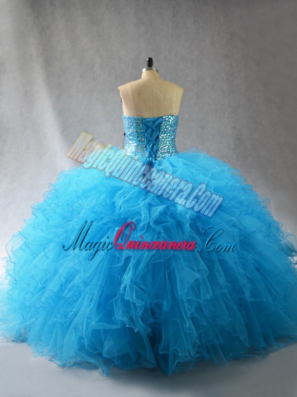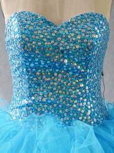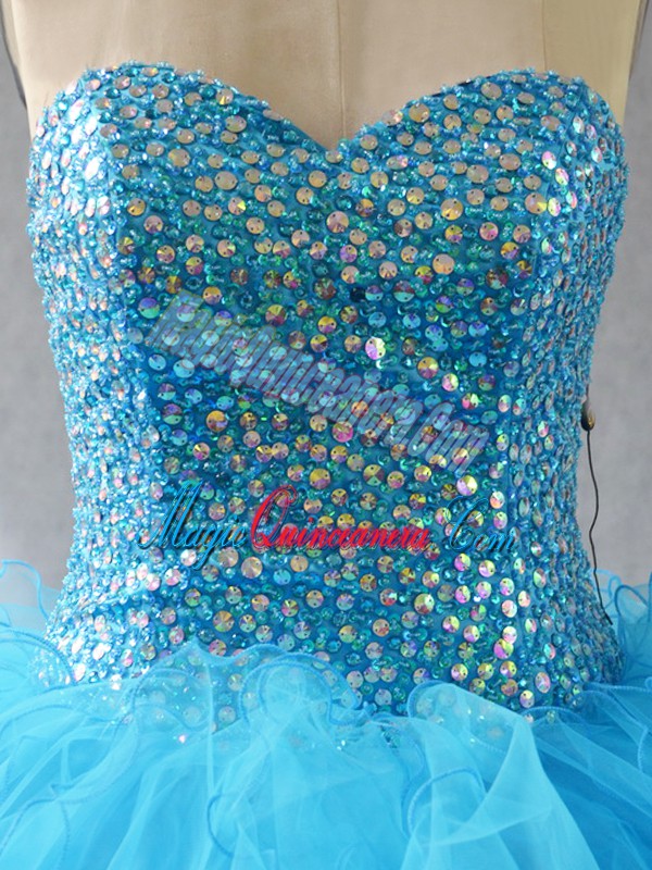 Baby Blue Sweetheart Neckline Beading and Ruffles Quinceanera Dress Sleeveless Lace Up