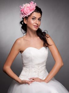 Baby Pink Hand Made Flowers Lace Net Yarn Bridal Fascinators