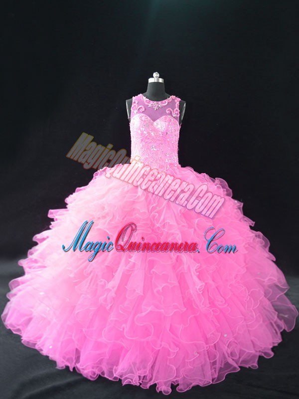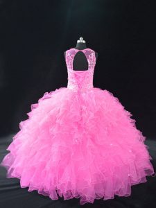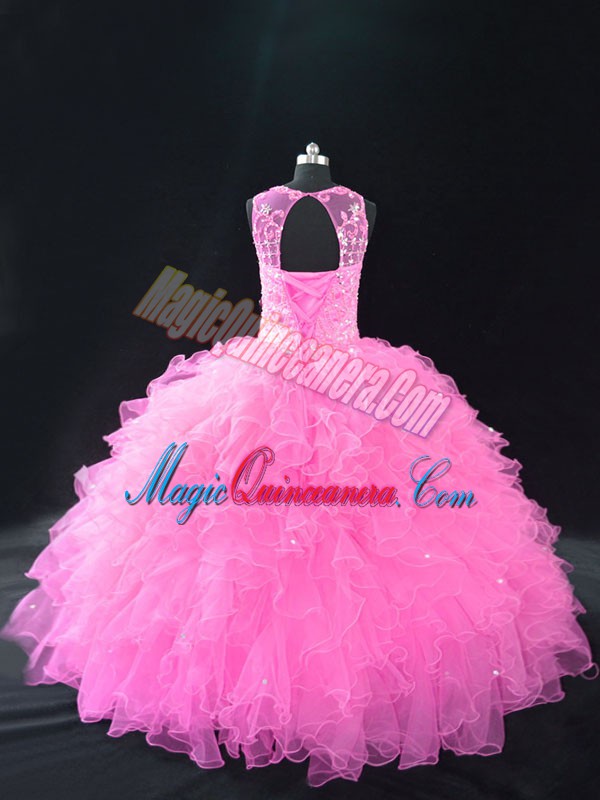 Baby Pink Sleeveless Beading and Ruffles Lace Up Sweet 16 Dress