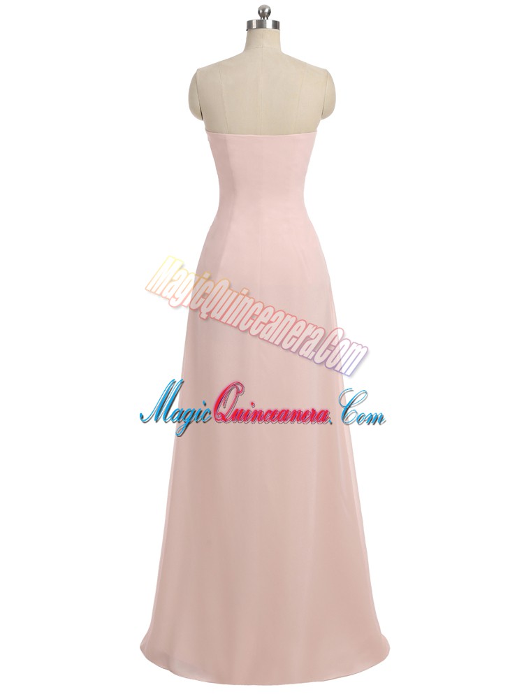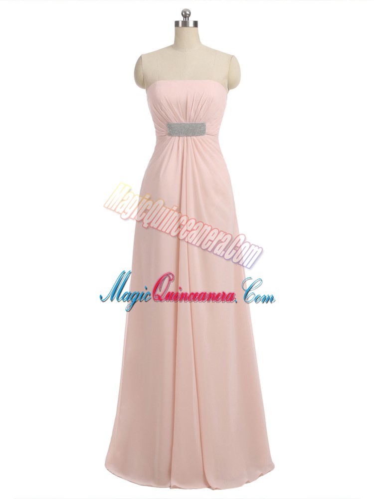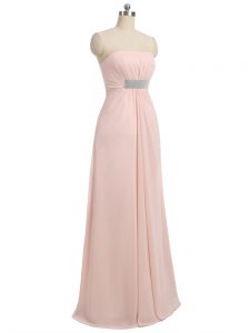 , Baby Pink Sleeveless Beading Floor Length Vestidos de Damas