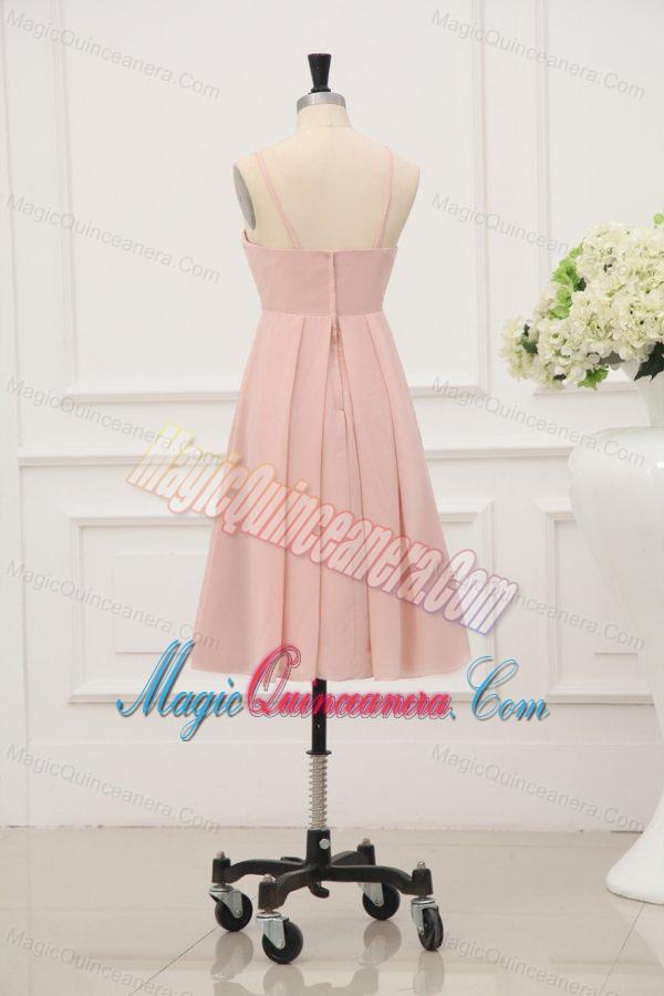Baby Pink Spaghetti Straps Chiffon Dama Dress for Quinceanera
