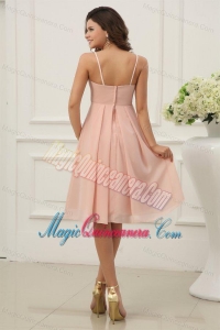 beautiful short 15 dresses for damas, Baby Pink Spaghetti Straps Chiffon Dama Dress for Quinceanera