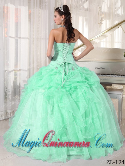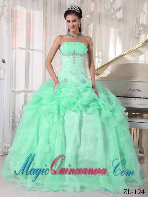 Ball Gown Strapless Apple Green Organza Beading Best Quinceanera Dress