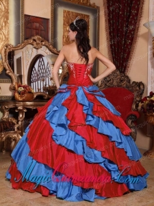 beautiful strapless beading and embroidery quinceanera dresses in blue and red,