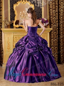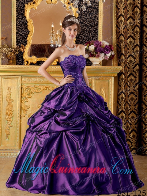 Ball Gown Strapless Taffeta Appliques Elegant Quinceanera in Purple Dress