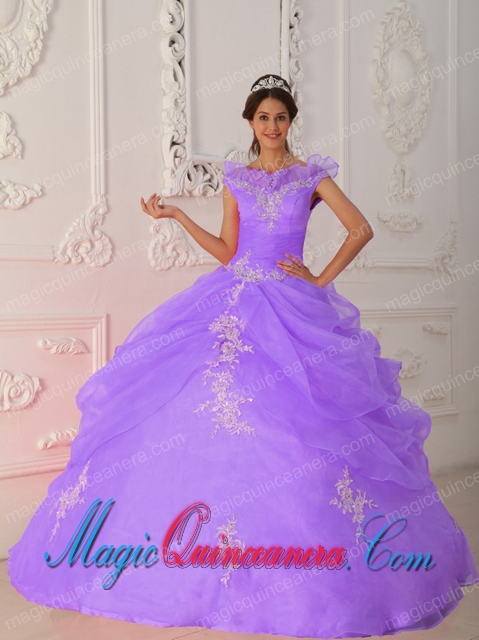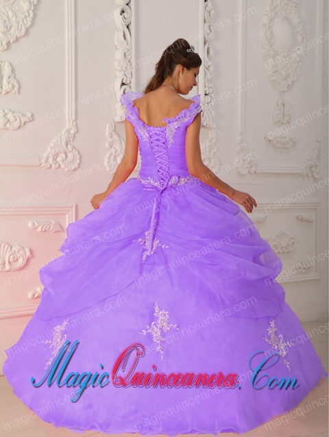 Ball Gown V-neck Gorgeous Taffeta and Organza Appliques with Beading Quinceanera Dress in Lavender