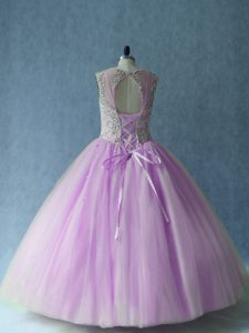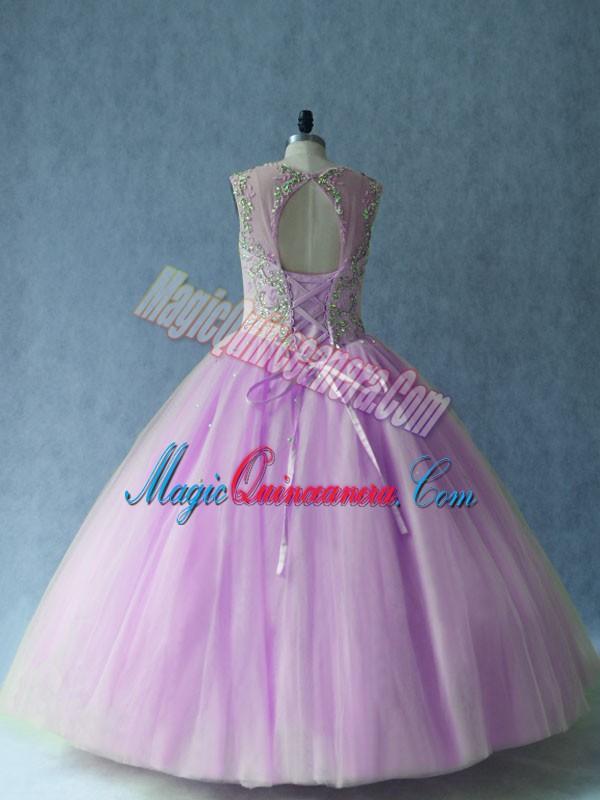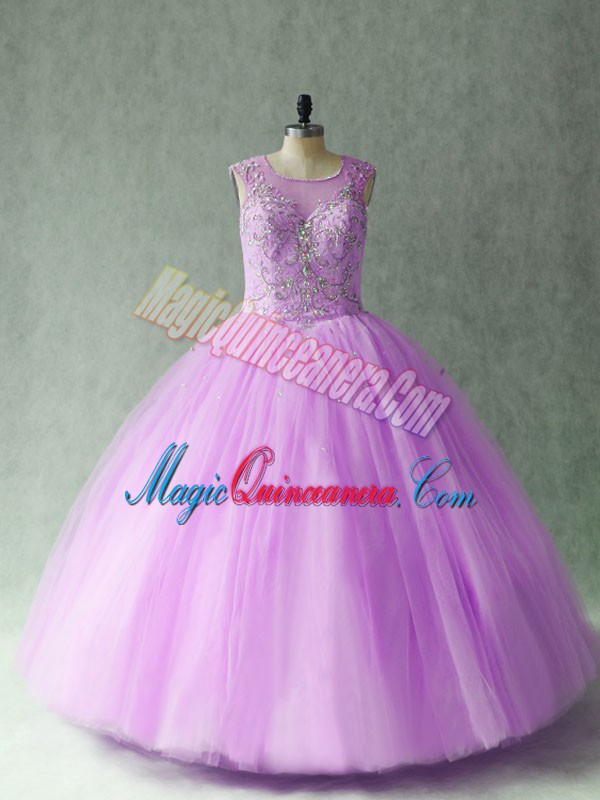 , Ball Gowns 15 Quinceanera Dress Lilac Scoop Tulle Sleeveless Floor Length Lace Up
