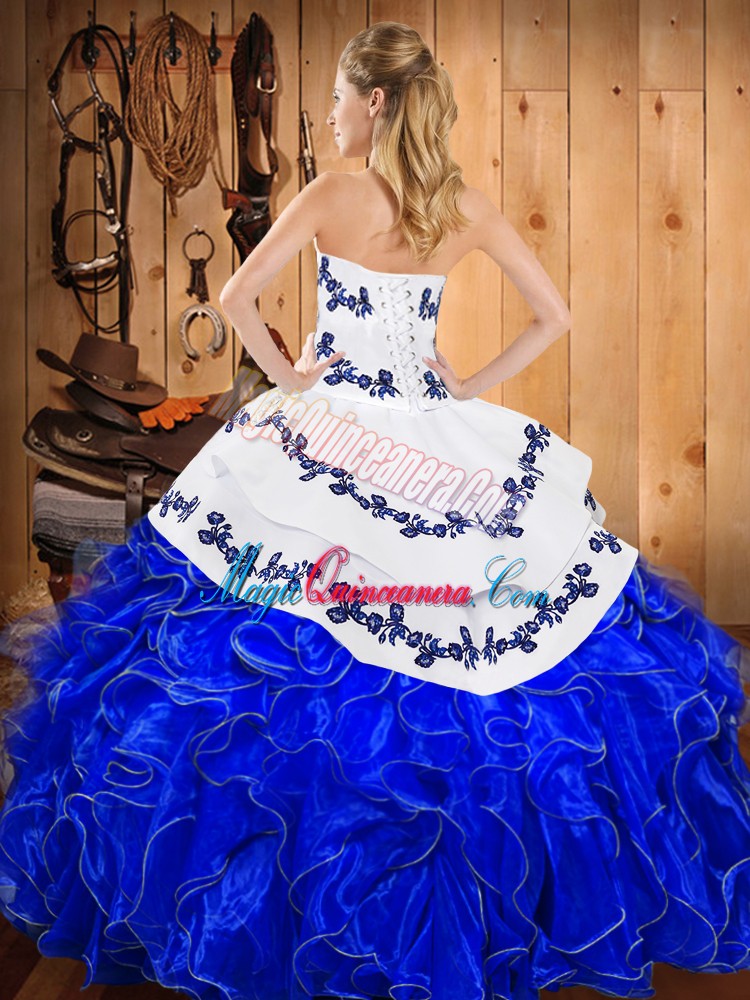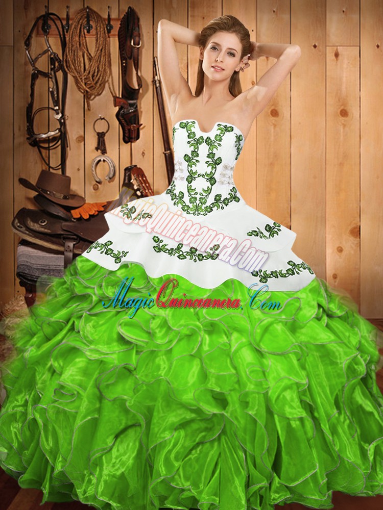 Ball Gowns Embroidery and Ruffles Sweet 16 Quinceanera Dress Lace Up Satin and Organza Sleeveless Floor Length