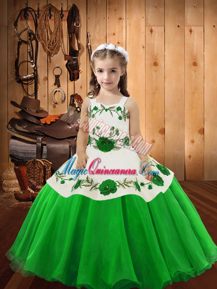 , Ball Gowns Glitz Pageant Dress Straps Organza Sleeveless Floor Length Lace Up
