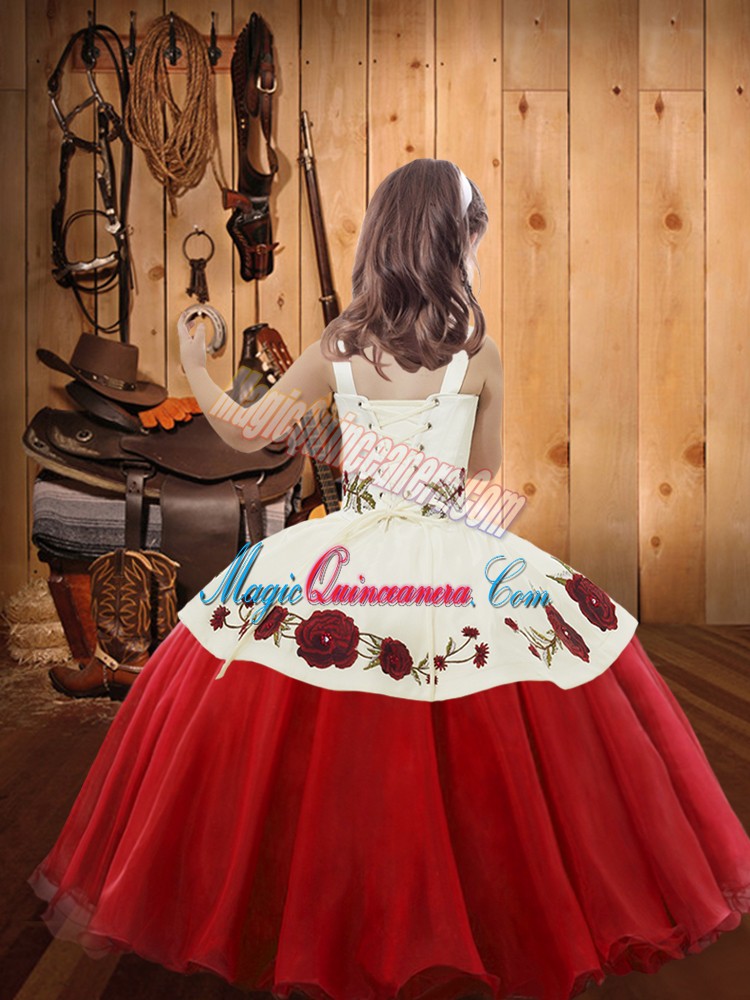 Ball Gowns Glitz Pageant Dress Straps Organza Sleeveless Floor Length Lace Up