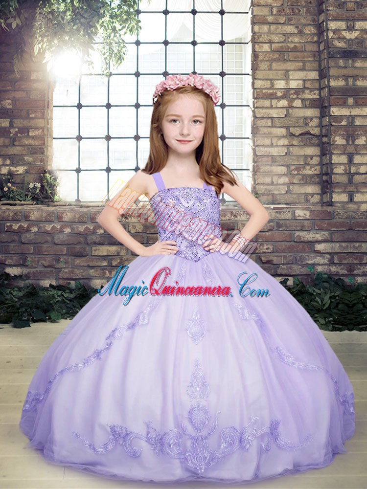 Ball Gowns Little Girls Pageant Dress Wholesale Lavender Straps Tulle Sleeveless Floor Length Lace Up