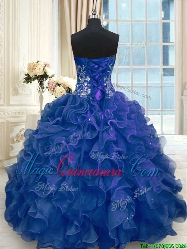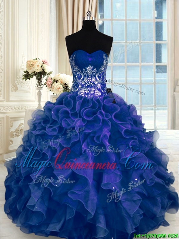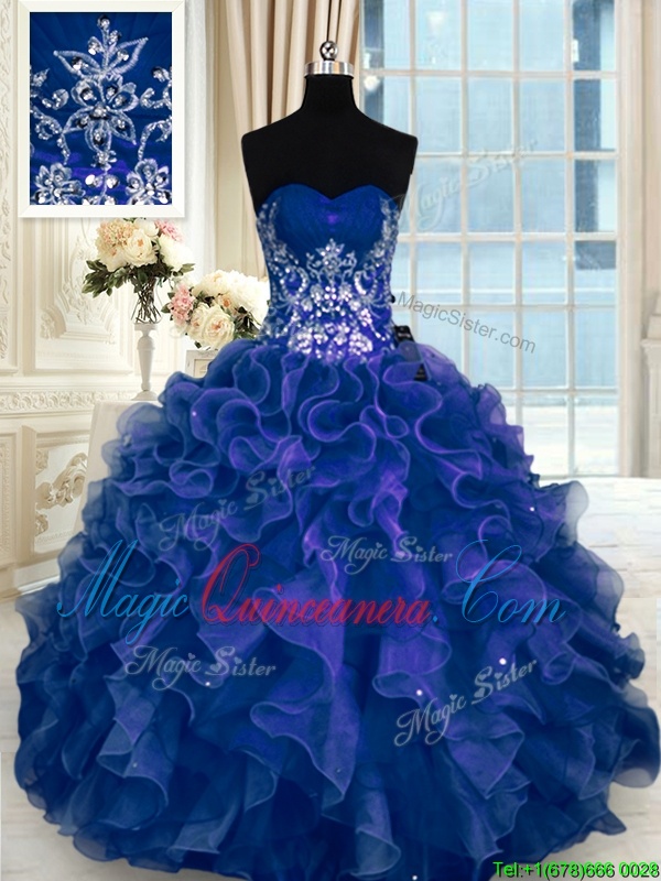 Ball Gowns Quinceanera Dress Navy Blue Sweetheart Organza Sleeveless Floor Length Lace Up