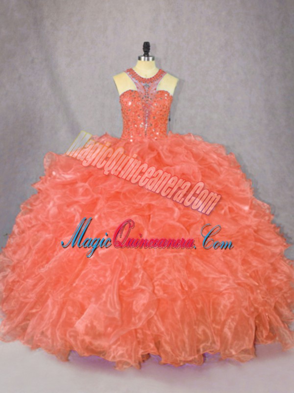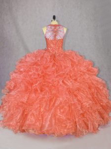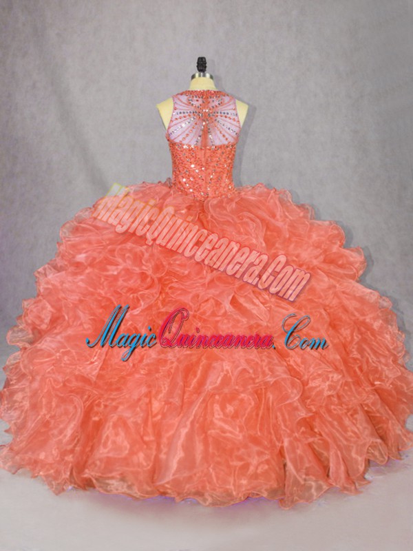 Ball Gowns Quinceanera Dress Orange Scoop Organza Sleeveless Floor Length Zipper