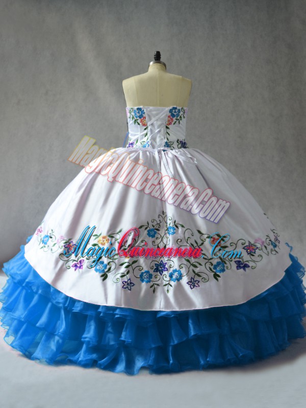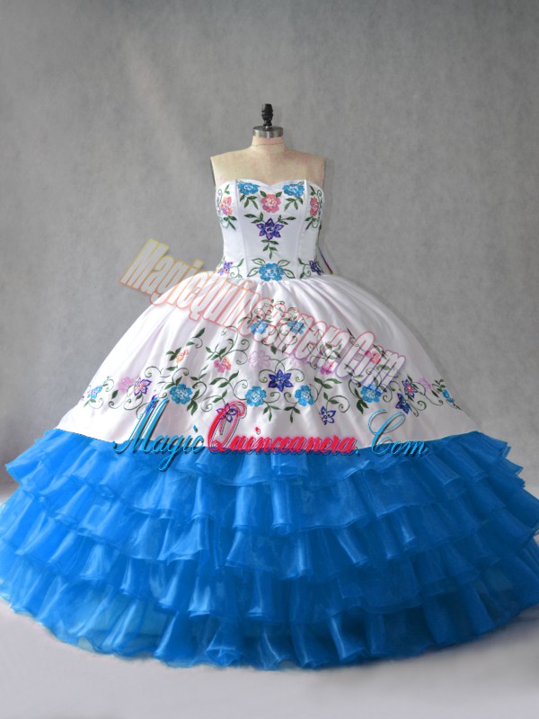 Ball Gowns Quinceanera Dresses Blue And White Sweetheart Organza Sleeveless Floor Length Lace Up