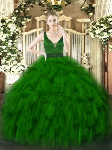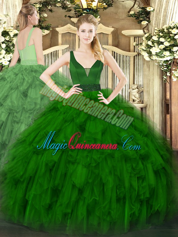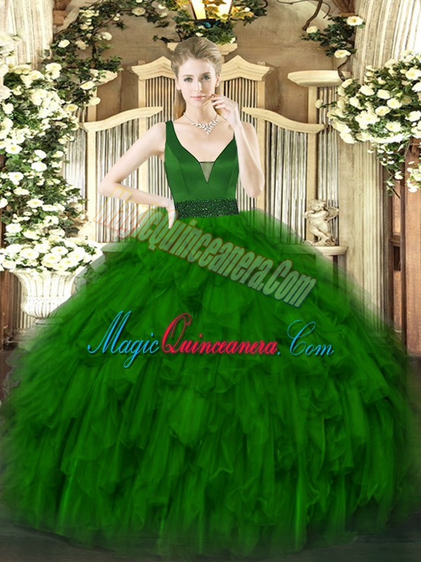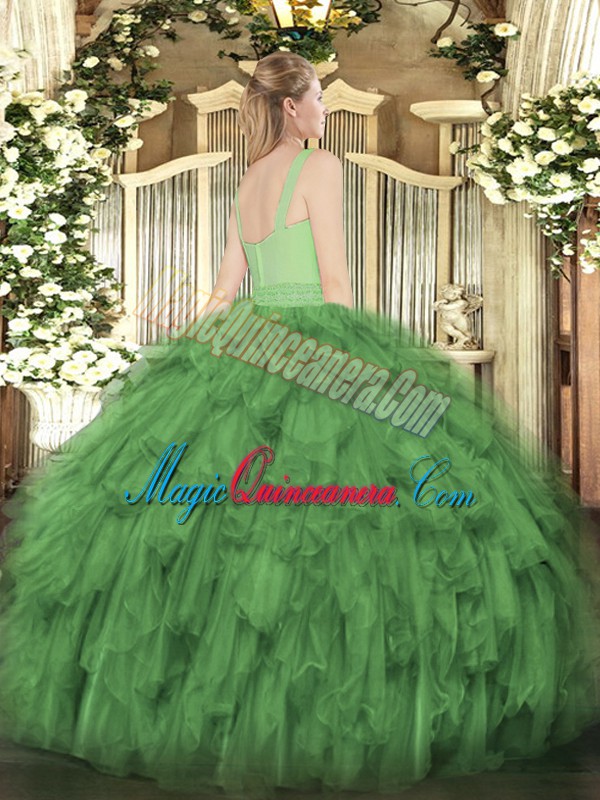 Ball Gowns Quinceanera Dresses Dark Green Straps Organza Sleeveless Floor Length Zipper