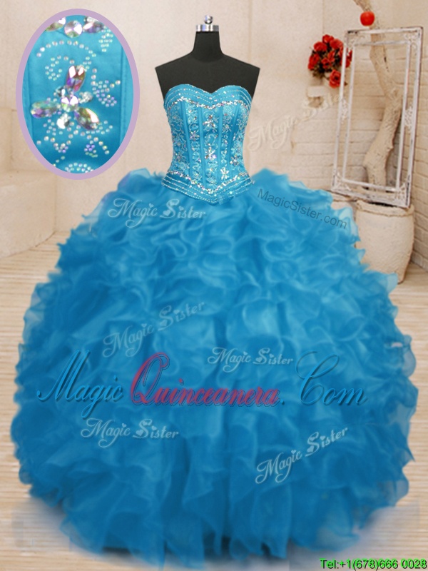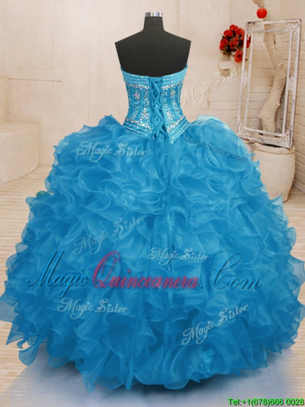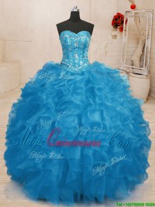 Ball Gowns Quinceanera Gown Baby Blue Sweetheart Organza Sleeveless Floor Length Lace Up