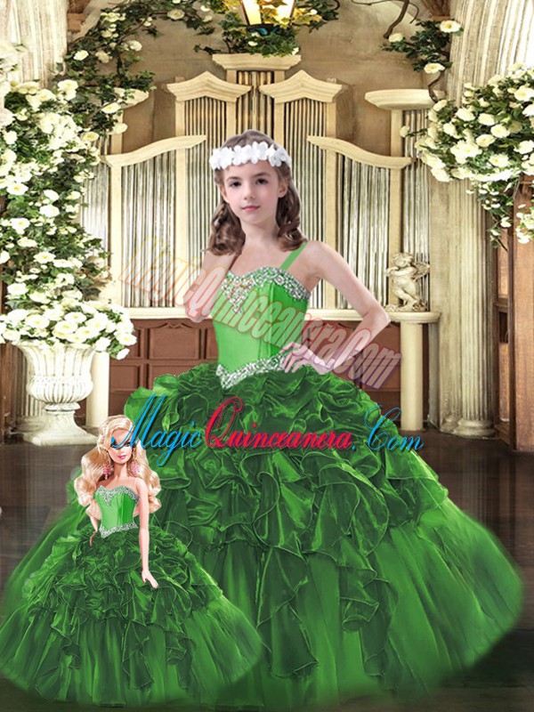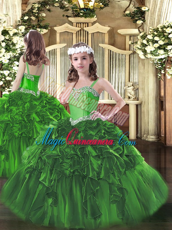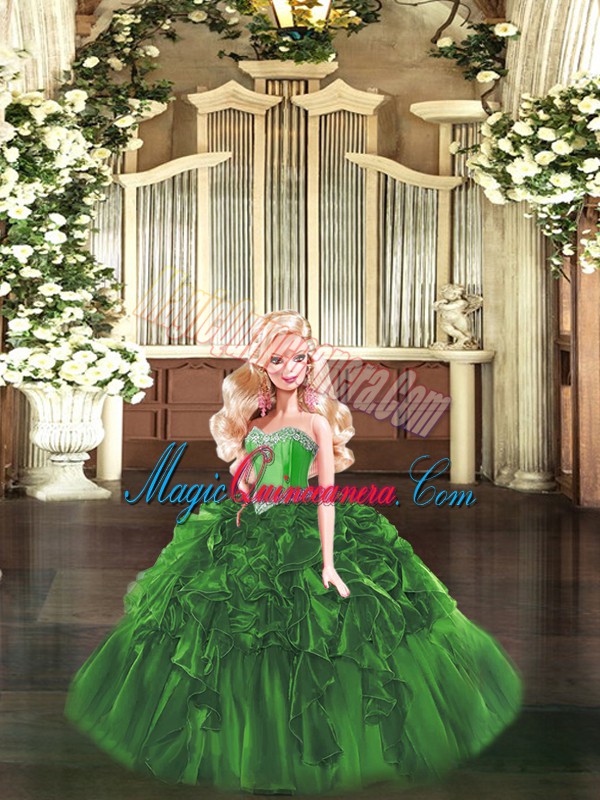 Ball Gowns Quinceanera Gown Green Sweetheart Organza Sleeveless Floor Length Lace Up
