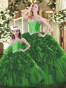 , Ball Gowns Quinceanera Gown Green Sweetheart Organza Sleeveless Floor Length Lace Up