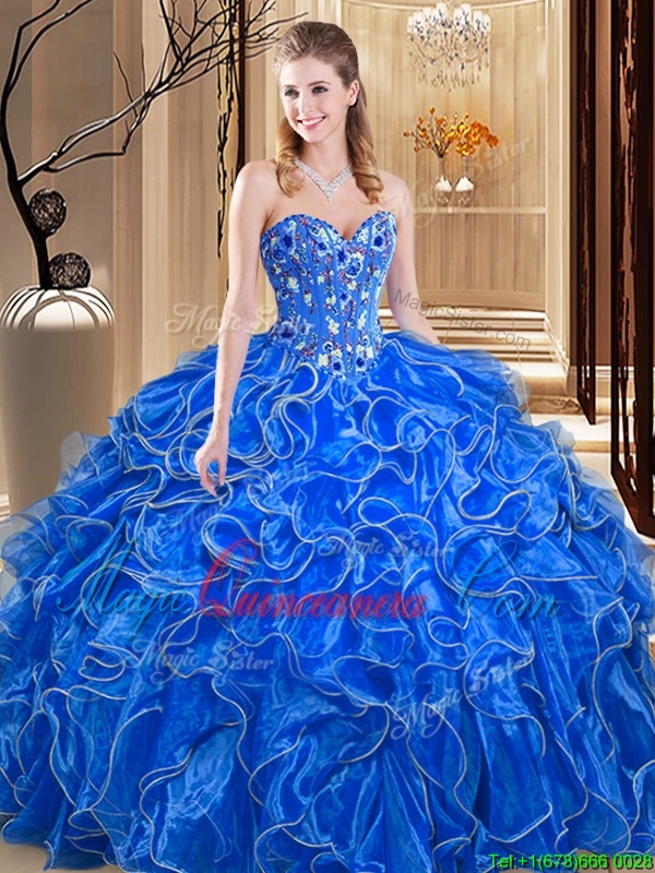 Ball Gowns Quinceanera Gown Royal Blue Sweetheart Organza Sleeveless Floor Length Lace Up