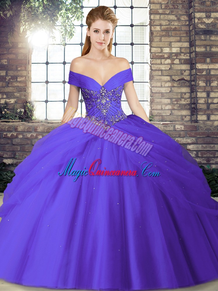 , Ball Gowns Sleeveless Purple Quince Ball Gowns Brush Train Lace Up