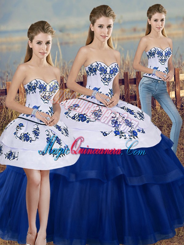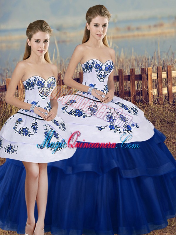 Ball Gowns Sweet 16 Dress Royal Blue Sweetheart Tulle Sleeveless Floor Length Lace Up