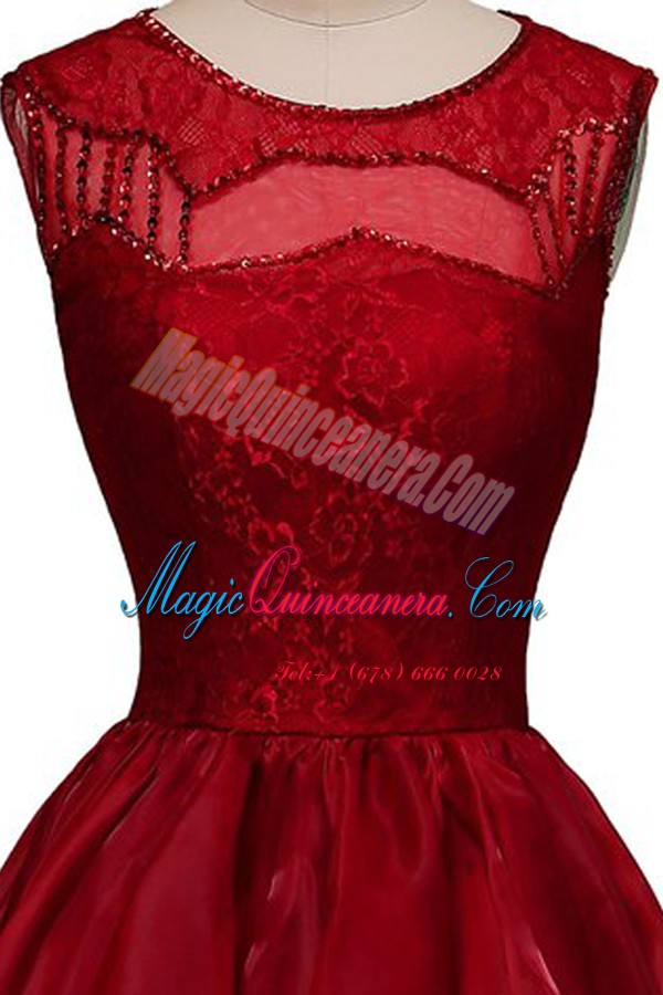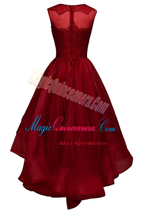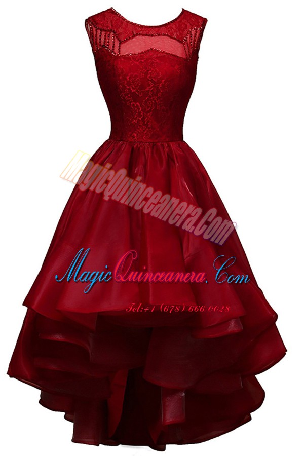 Bateau Sleeveless Mother Of The Bride Dress High Low Beading Wine Red Organza