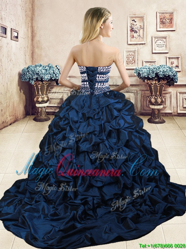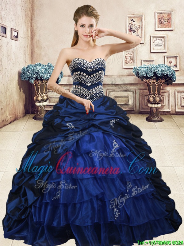 Beading and Appliques and Ruffled Layers and Pick Ups Sweet 16 Quinceanera Dress Navy Blue Lace Up Sleeveless Floor Length