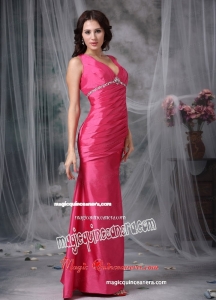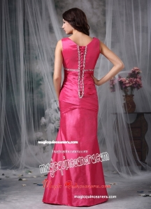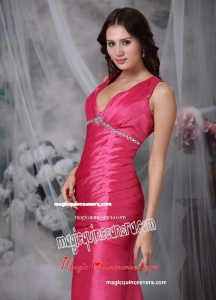 Beading And Ruch V Neck Coral Red Taffeta Mother Dress