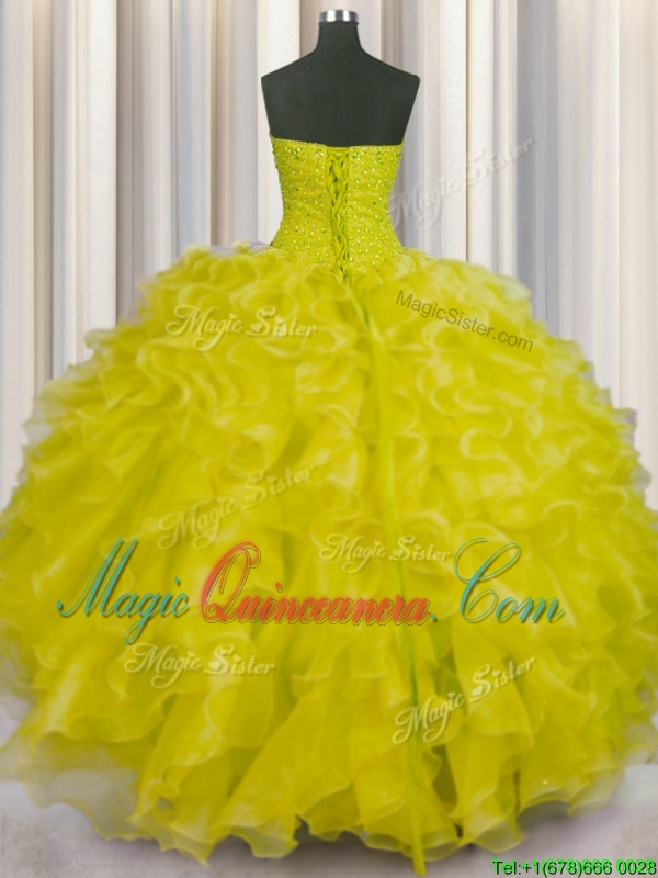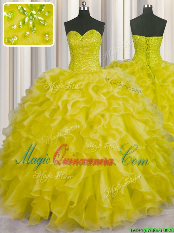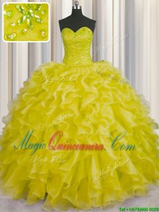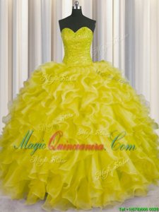 Beading and Ruffles 15 Quinceanera Dress Yellow Green Lace Up Sleeveless Floor Length