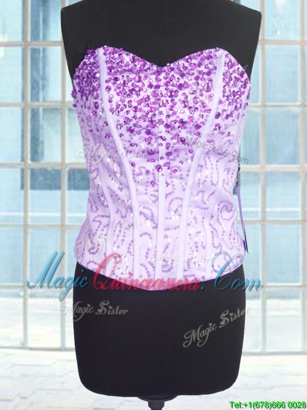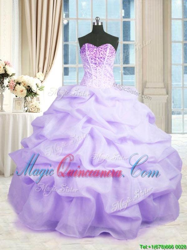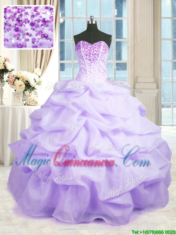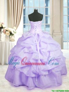 , Beading and Ruffles Ball Gown Prom Dress Lavender Lace Up Sleeveless Floor Length