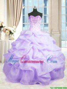 Beading and Ruffles Ball Gown Prom Dress Lavender Lace Up Sleeveless Floor Length