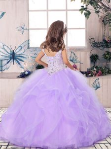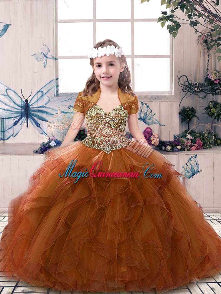 Beading and Ruffles Little Girl Pageant Dress Rust Red Lace Up Sleeveless Floor Length
