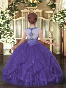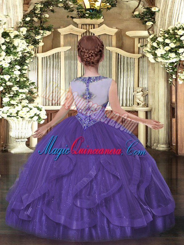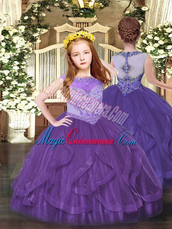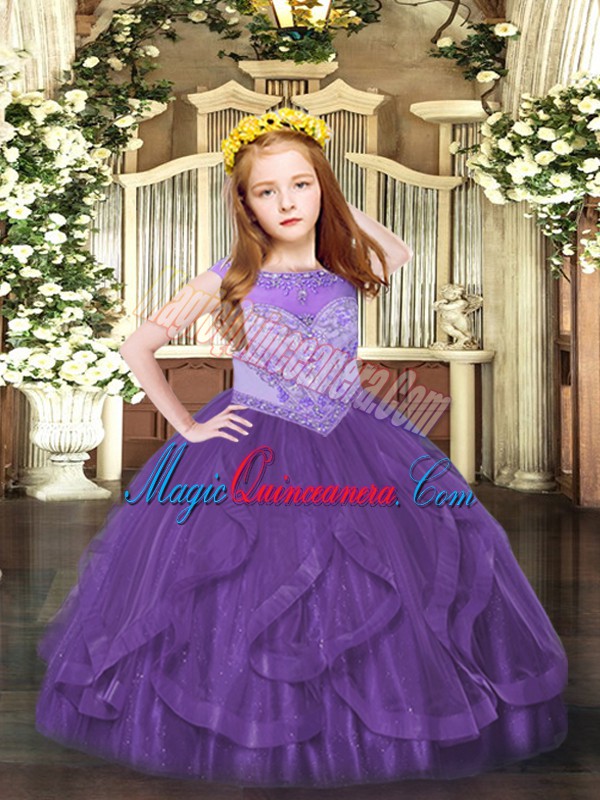 , Beading and Ruffles Pageant Dress for Girls Purple Zipper Sleeveless Floor Length