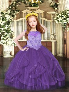 Beading and Ruffles Pageant Dress for Girls Purple Zipper Sleeveless Floor Length